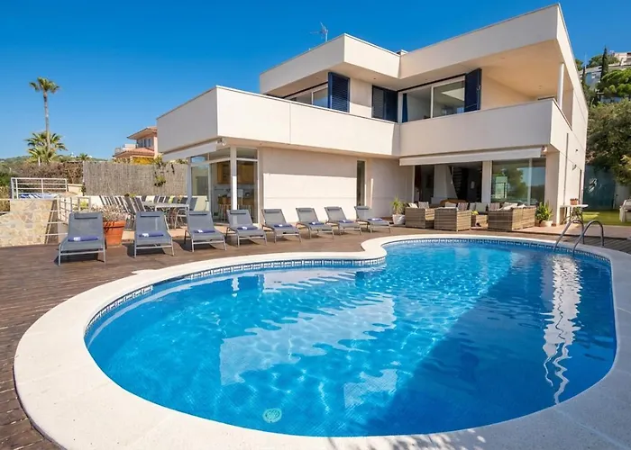 Villa Med A 2 kilometros andando de la playa, del puerto de Aguadoç y a 4 del centro de Sitges Muy Soleada todo el dia Capacidad superior a 16 personas NO REQUIERE COCHE